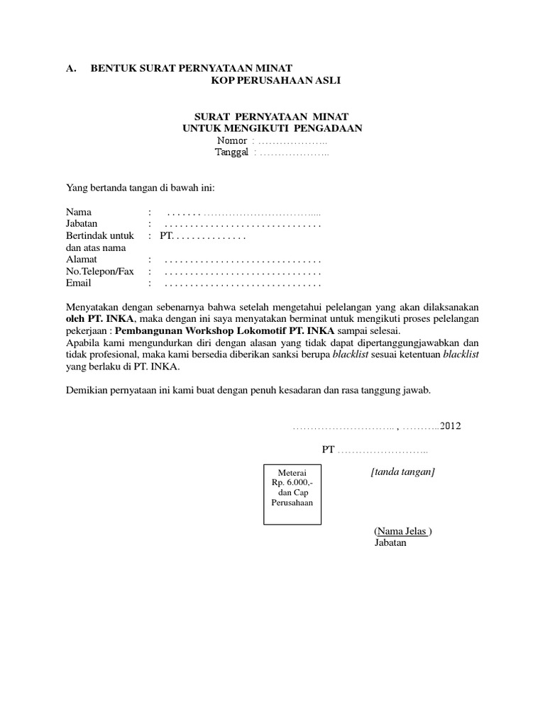 | Lihat Contoh Surat Pernyataan Minat Untuk Mengikuti Lelang Kumpulan Surat Penting |